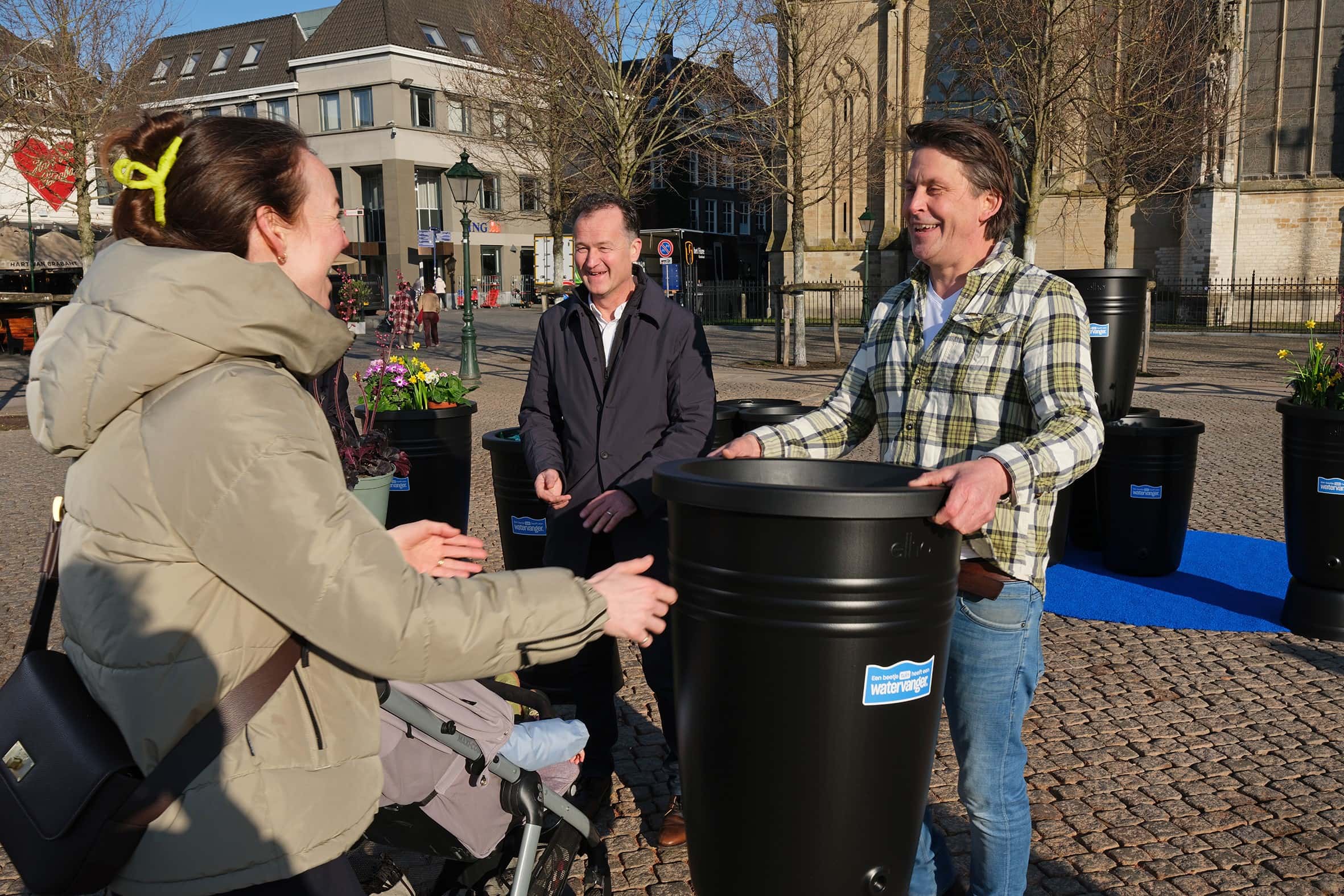 Ambassadeur en tuinexpert Lodewijk Hoekstra en voorzitter van de Unie van Waterschappen Jeroen Haan hebben in Den Bosch de officiële aftrap gegeven voor het initiatief. Dit voorjaar trekt een Watervangersbrigade door het land om hulp te bieden bij het opvangen van regenwater. Ook wordt er praktisch advies gedeeld voor iedereen die zelf aan de slag wil met een watervanger.