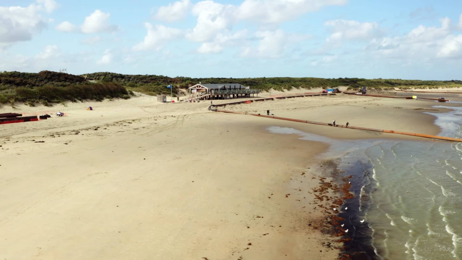 Overzichtsshots werkzaamheden aan de dijk.