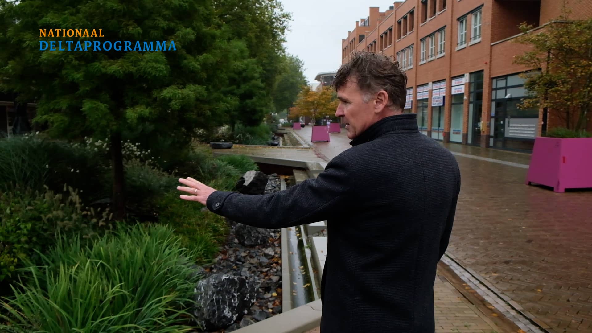 tot 2015 liep door deze straat de rijksweg van Zwolle naar Almelo. Vervolgens werd er een tunnel gebouwd door Rijkswaterstaat en dat was voor ons reden om deze weg te transformeren van een rijksweg naar een winkelstraat. Dat hebben we gedaan, niet als gemeente door zelf een plan te maken, maar we hebben inwoners en ondernemers gevraagd om met ons mee te denken wat goed zou zijn voor het centrum van Nijverdal. En dat plan hebben we later technisch vertaald in een klimaatadaptieve situatie, wat je hier kunt zien. Hier hebben we een wadi gebouwd waarvan het de bedoeling is om het water in dit gebied langer vast te houden. Dat doen we door de beplanting, maar ook om eventueel hoosbuien en wateroverlast te voorkomen. En dat wordt dan via kanalen die aangelegd zijn wordt dat gespreid afgevoerd richting de rivier de Regge. Ja, het werkt zeker, absoluut. Ja, je kunt zien dat het functioneert. En het is totaal een bergingscapaciteit van 750m3. Dus daarmee zijn we ook qua klimaat echt toekomstbestendig en kunnen we jaren vooruit is de verwachting. Wij staan tussen nationaal park Sallandse Heuvelrug en het Reggedal. Daar is ook rekening mee gehouden met de beplanting en de bomen die zijn aangeplant, zodat als je hier in het centrum staat, je heel goed doorhebt dat je in een prachtige gemeente bent met een nationaal park in de achtertuin. Ik ben enorm trots, niet alleen vanwege het project zelf, maar ook met name dat we het samen met inwoners en ondernemers hebben gedaan. En die hebben ervoor gezorgd dat er uiteindelijk dit resultaat mogelijk is gemaakt. Waar eigenlijk iedereen heel enthousiast over is.