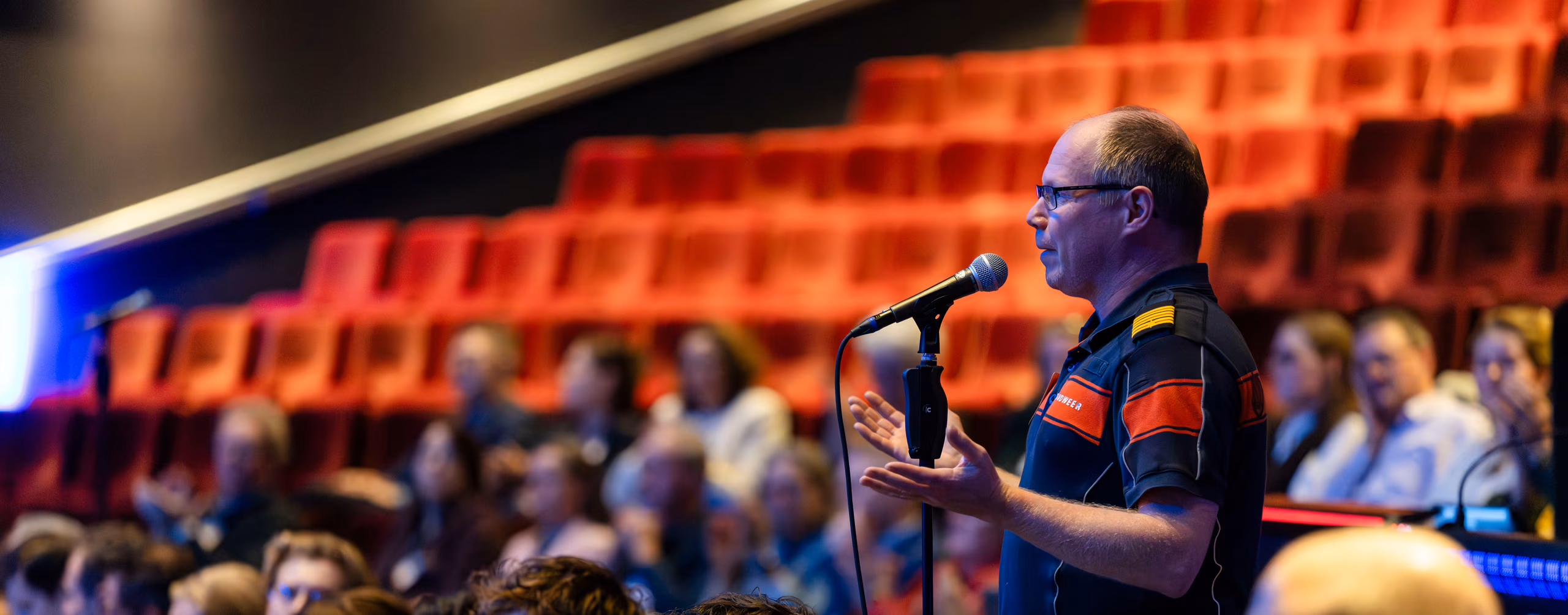 Gespreksleider Marcel Nieuwenweg nodigt de deelnemers uit tot meepraten.